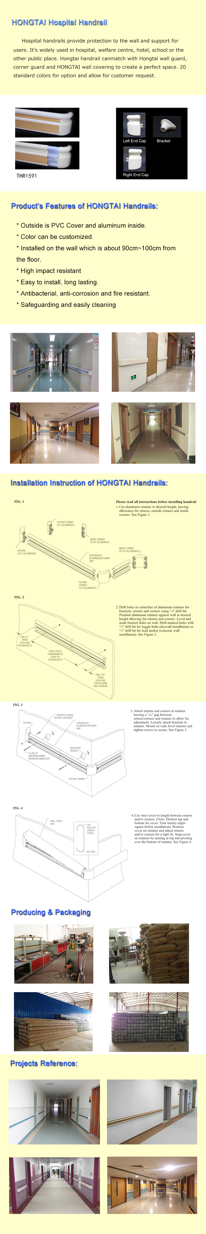 • product description:THR1595W: PVC & Aluminum Handrail with different wood color curve and bumper. Width: 159mm